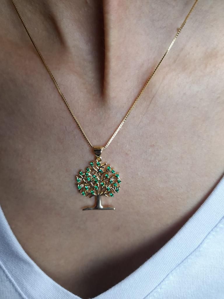 Colar Árvore Da Vida Pedras Esmeralda